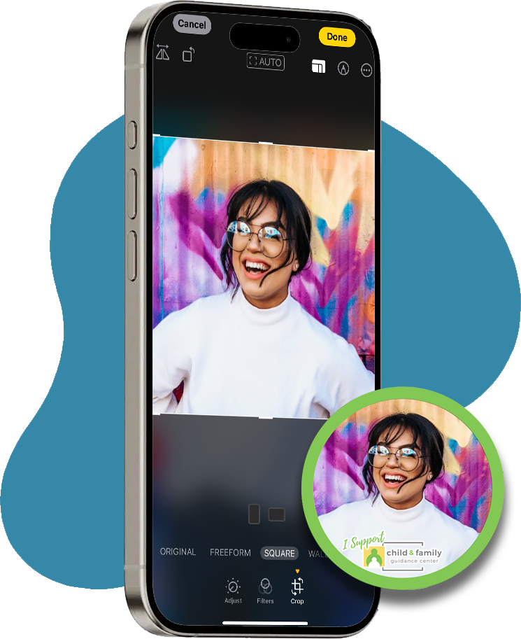 Crop your image into a square. You can do this in your device’s gallery app (Make sure to leave enough room for the frame!)